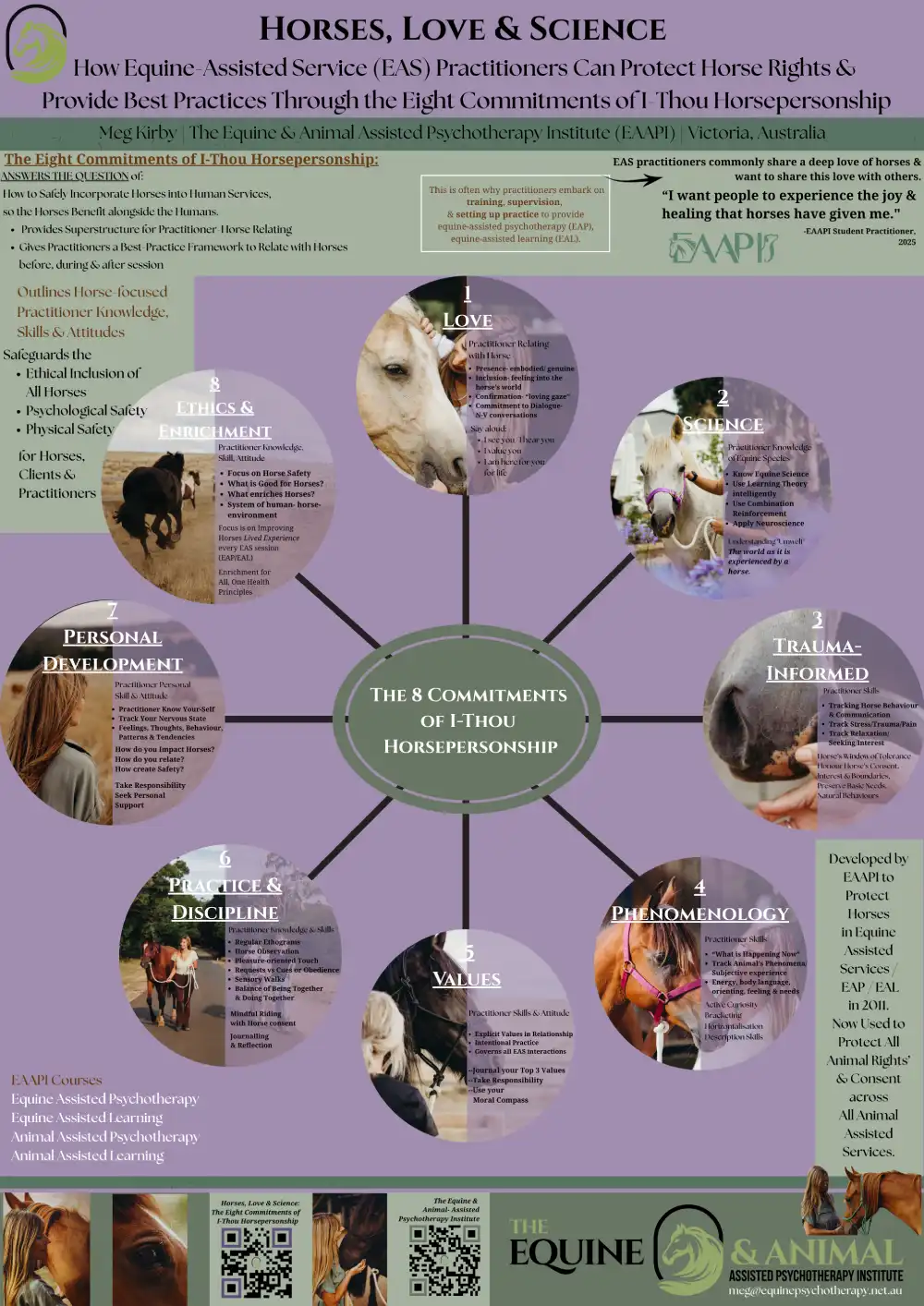 Protect horses rights and best practice through the 8 Commitments of I-Thou Horsemanship by hanging this in barn or office. Stay close to your love for horses and the work!